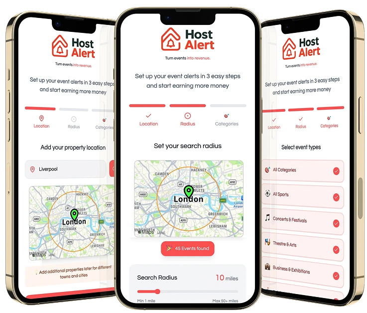 HostAlert addresses this issue by providing instant notifications for concerts and festivals in your area, ensuring you can raise your rates before high-demand dates are booked. We created HostAlert to bridge the gap between market demand and host awareness, so you never miss out on revenue opportunities.